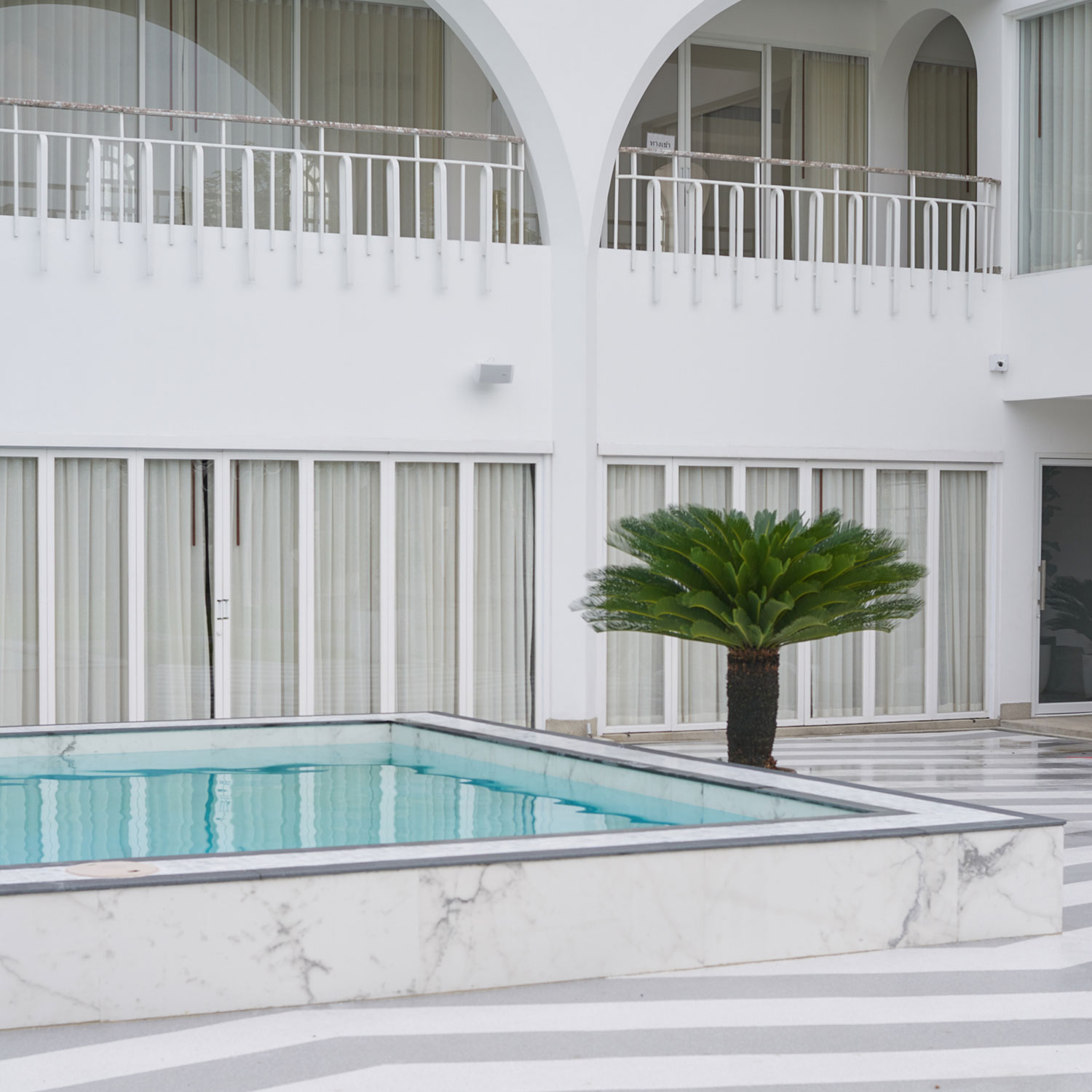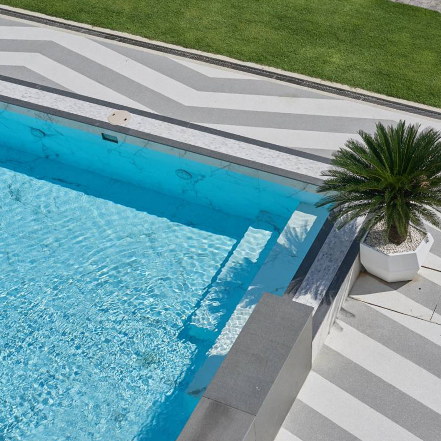 The centerpiece of this beautiful backyard design is the pool. It can be seen from every corner of the yard as well as from the interiors, this contemporary lap pool design includes a pool deck for lounging and entertaining