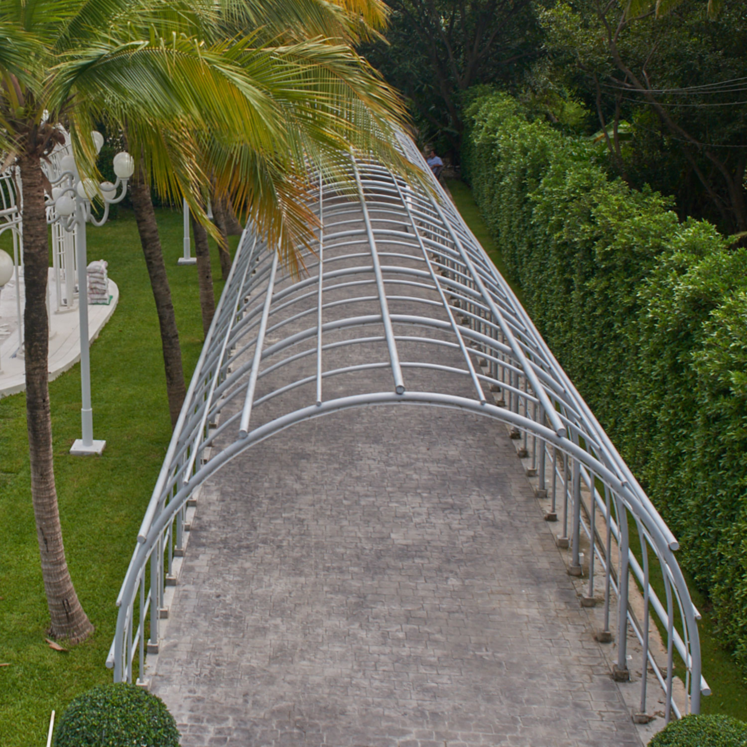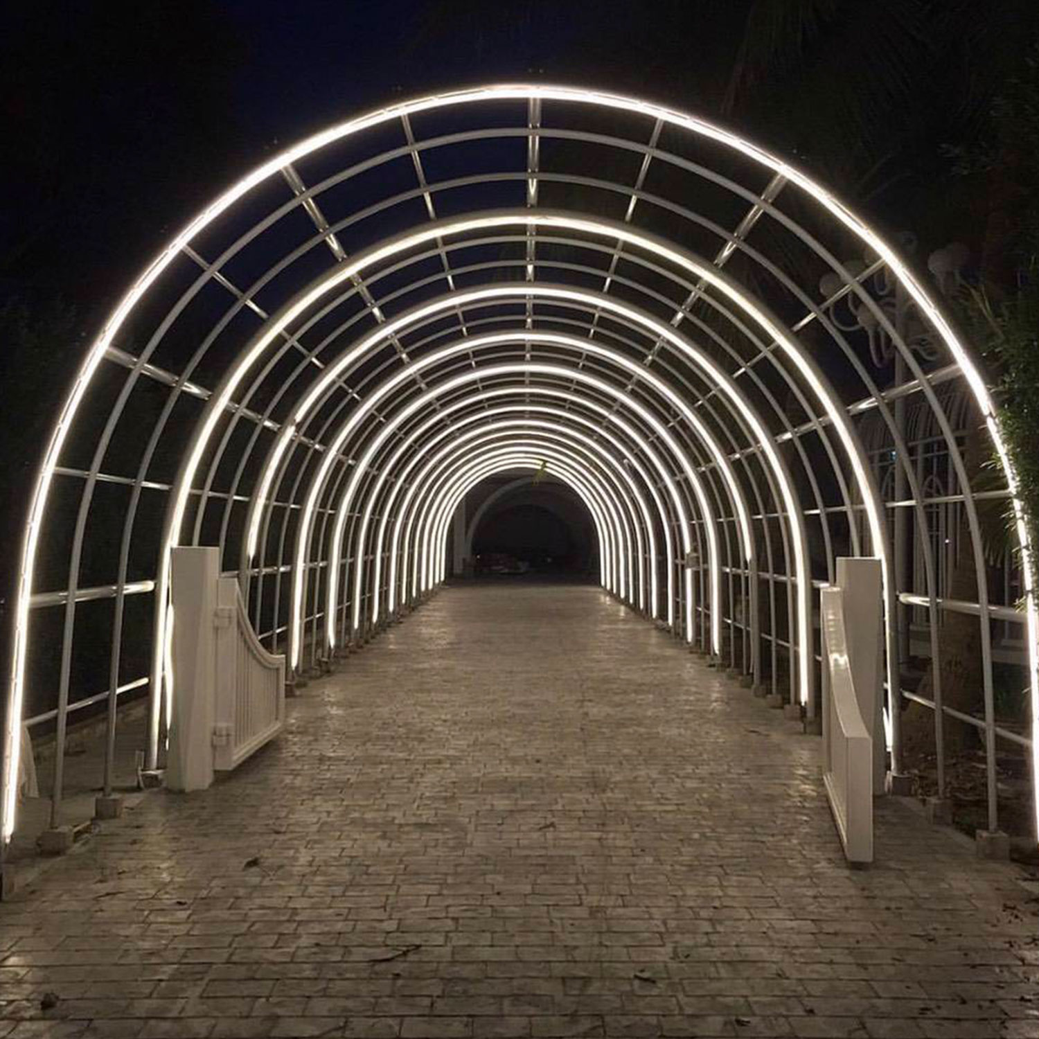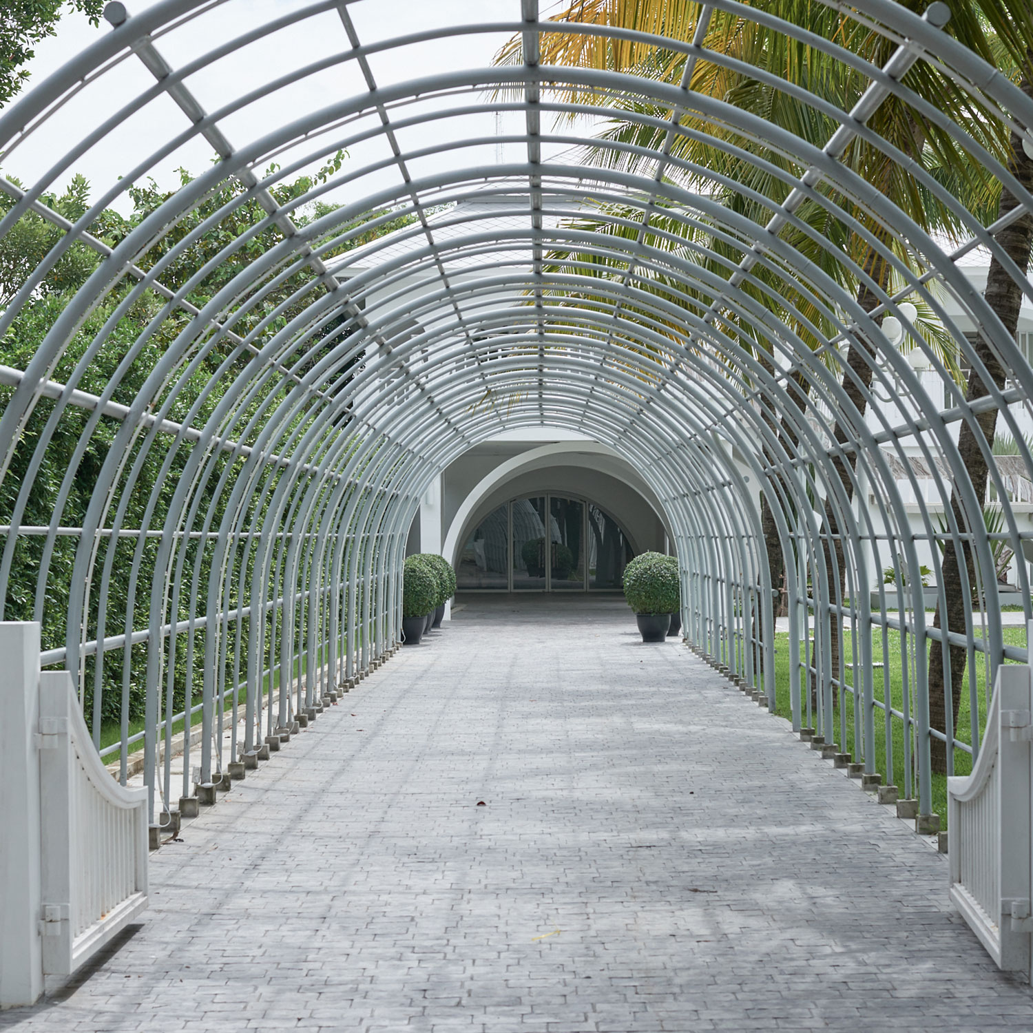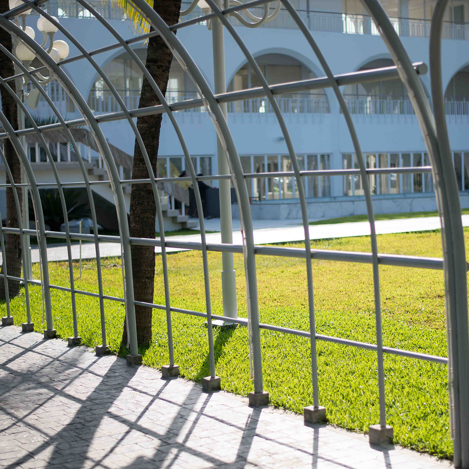 Radiating with elegance is this tunnel! Celebrate your outside ceremony in our white-gray tunnel which adjoins our glorious garden. The small but pretty tunnel 30 metres is framed by a glowing arch that becomes all the more impressive as the sun goes down.